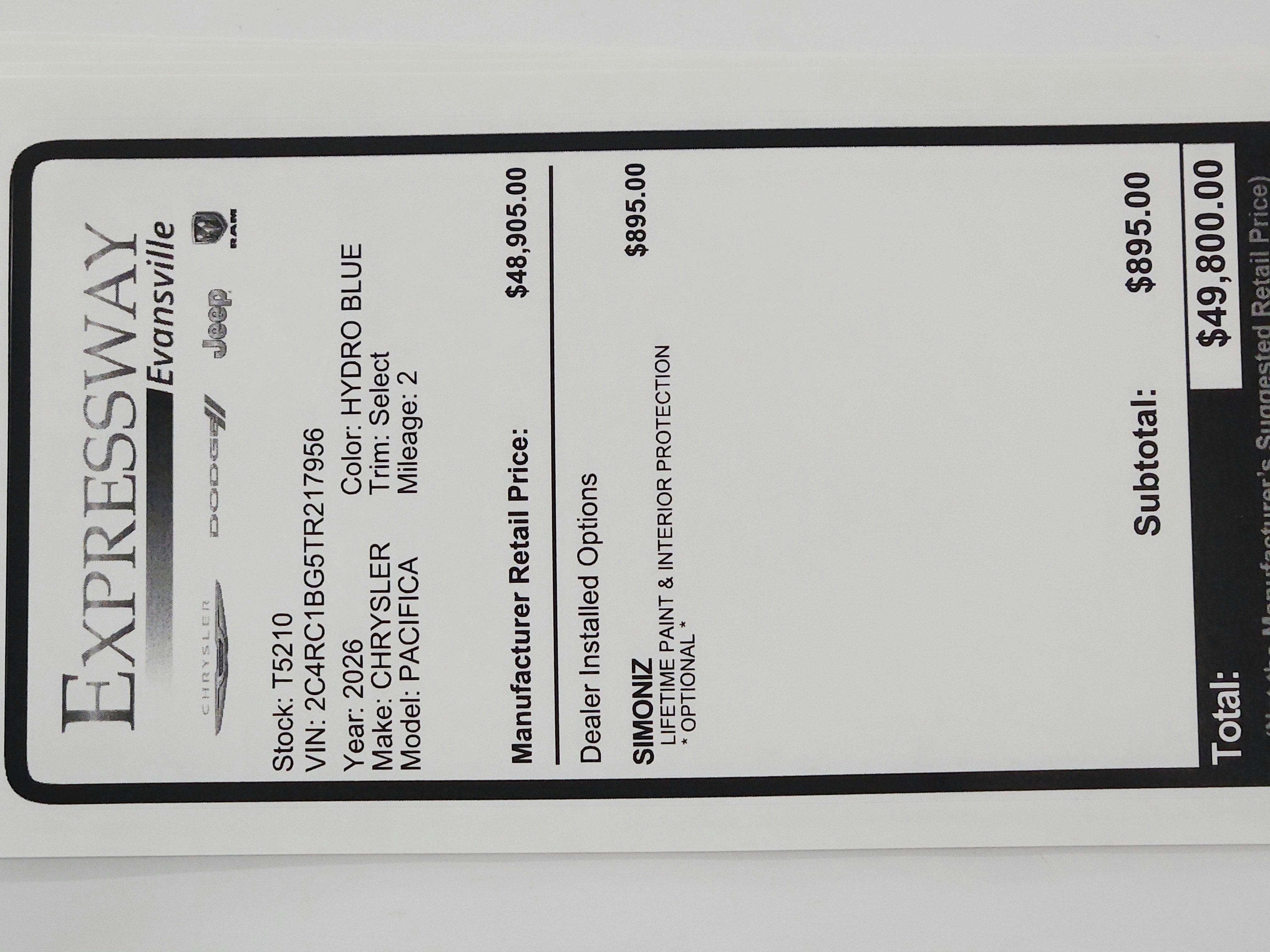 - Vehicle Name: Chrysler Pacifica