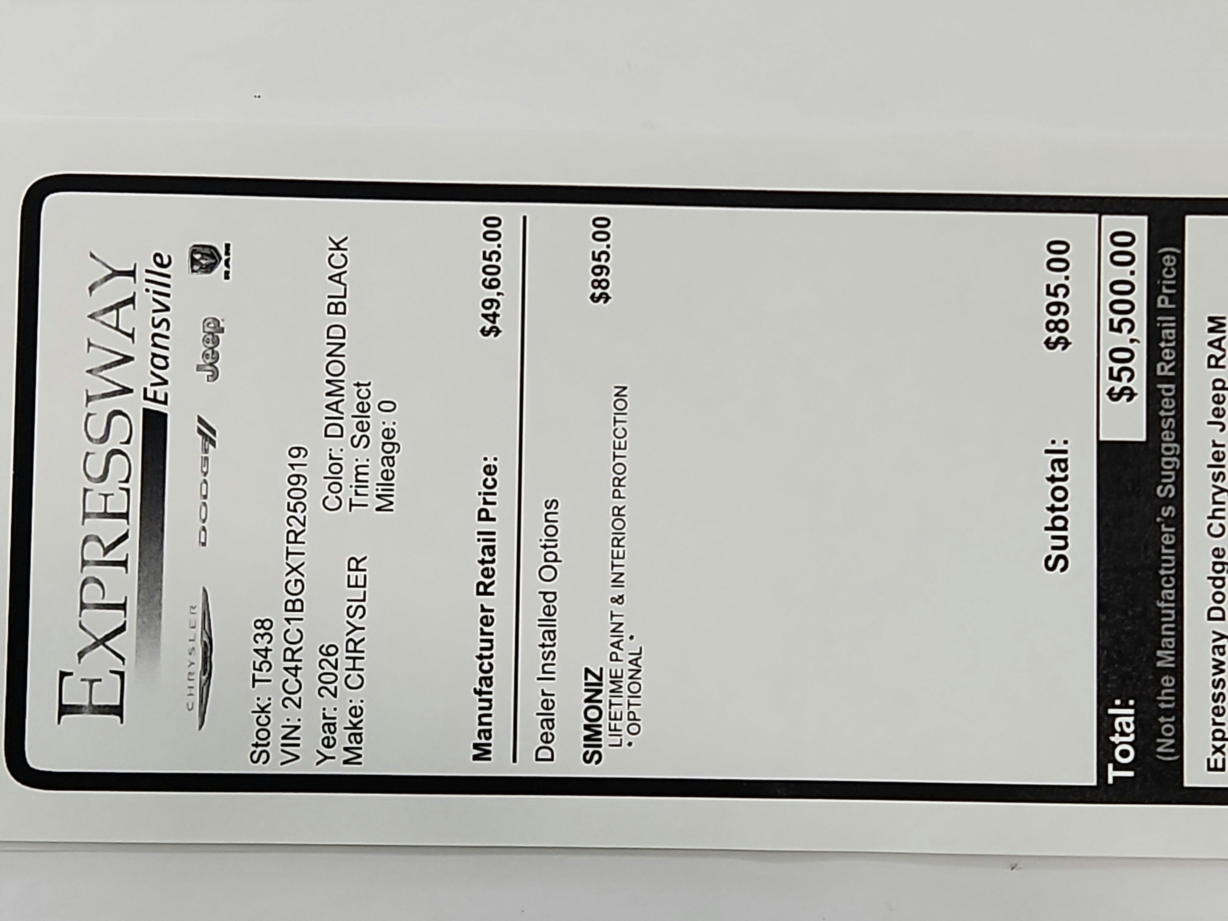 - Vehicle Name: Chrysler Pacifica
