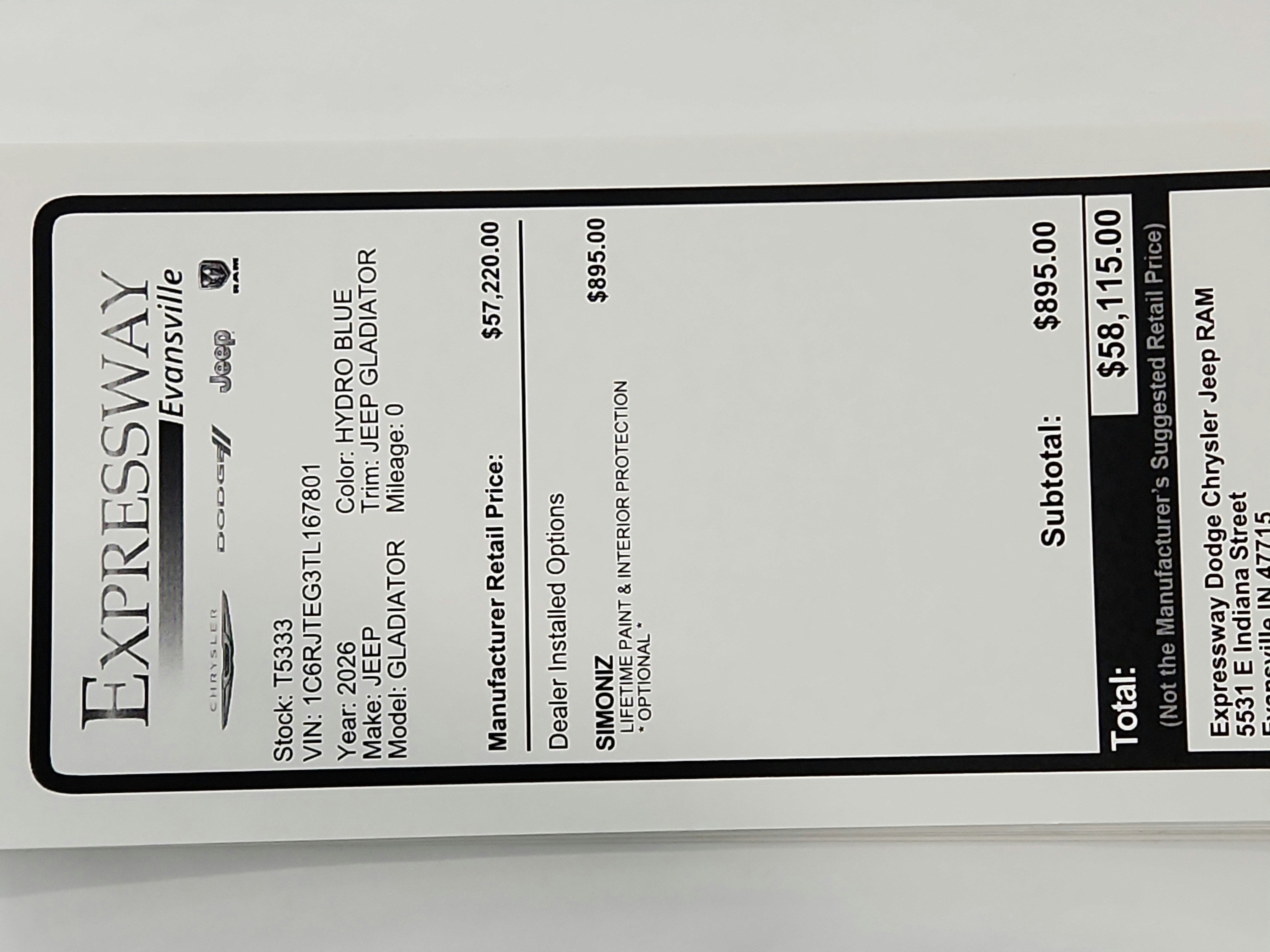 - Vehicle Name: Jeep Gladiator