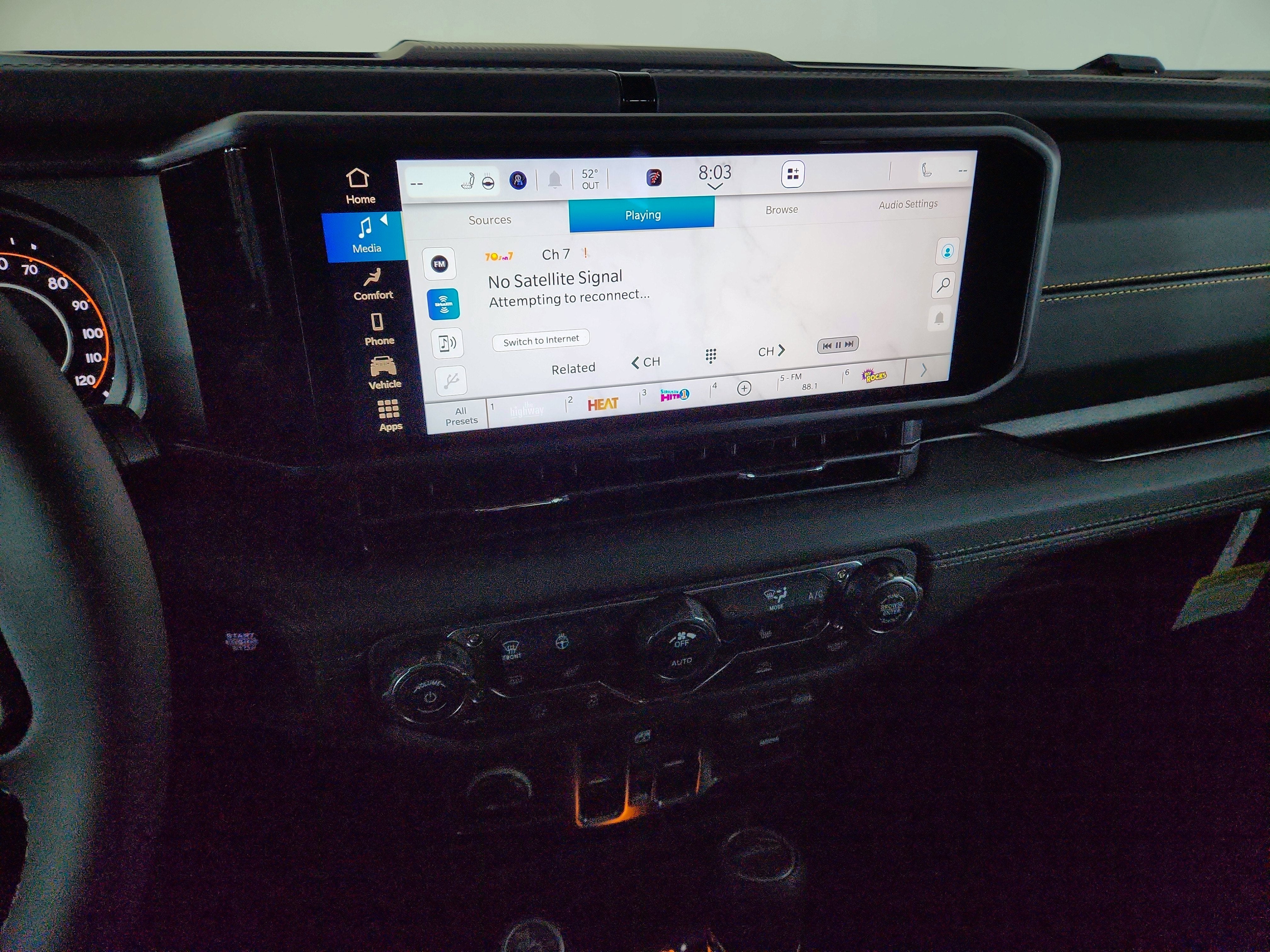 - Radio w/Seek-Scan, Clock, Speed Compensated Volume Control, Aux Audio Input Jack, Steering Wheel Controls, Voice Activation, Radio Data System and Uconnect External Memory Control