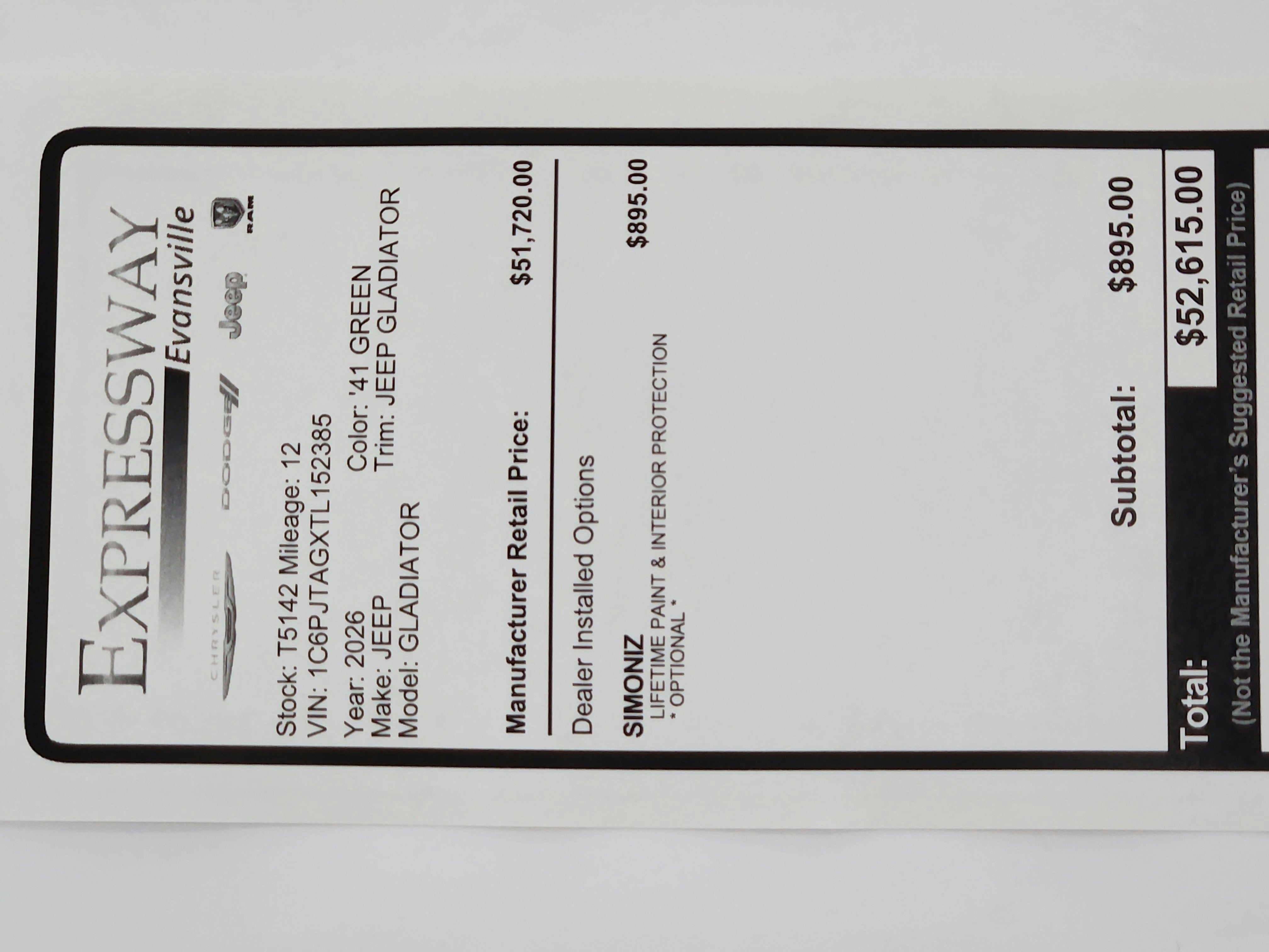 - Vehicle Name: Jeep Gladiator