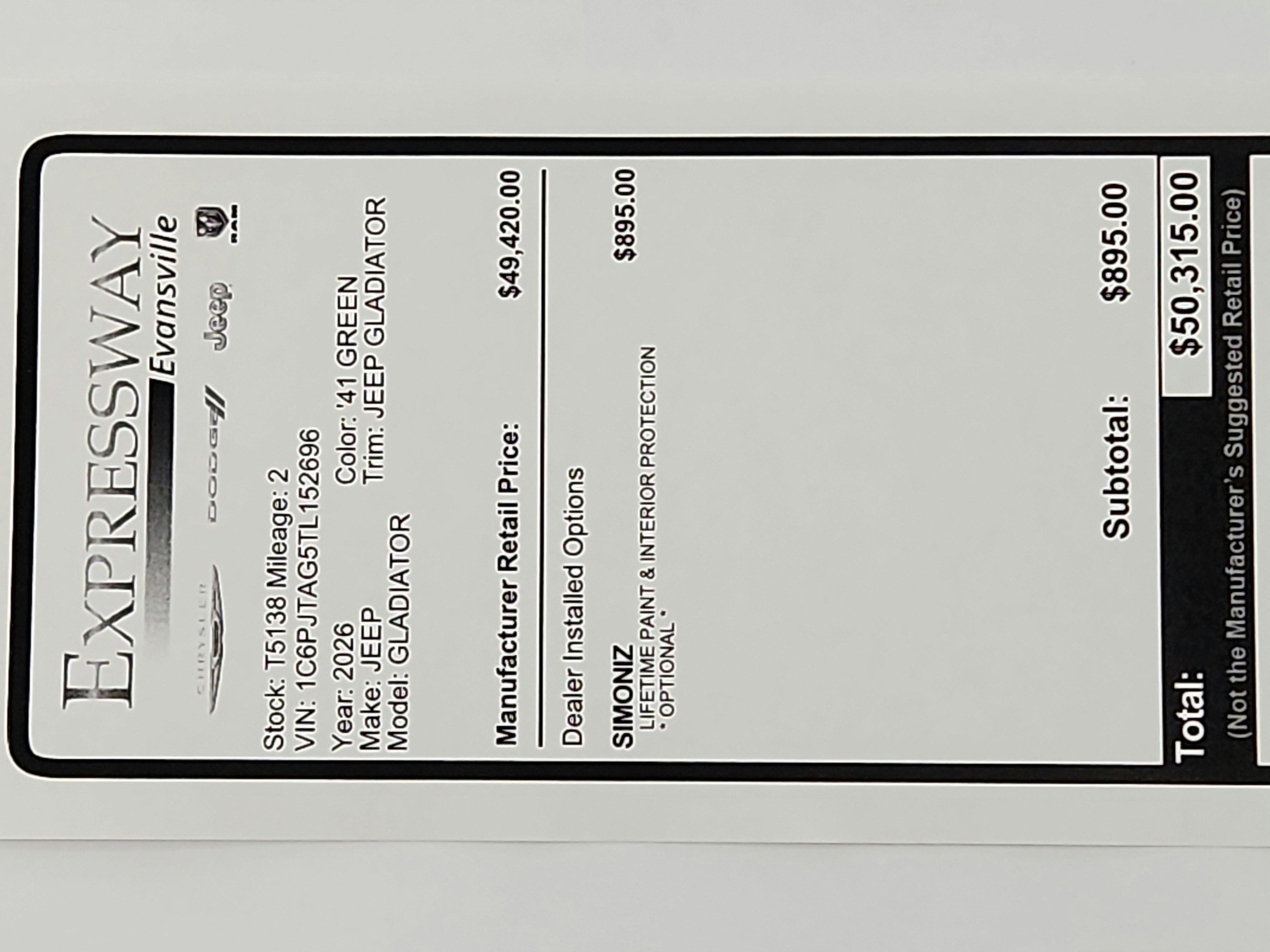 - Vehicle Name: Jeep Gladiator