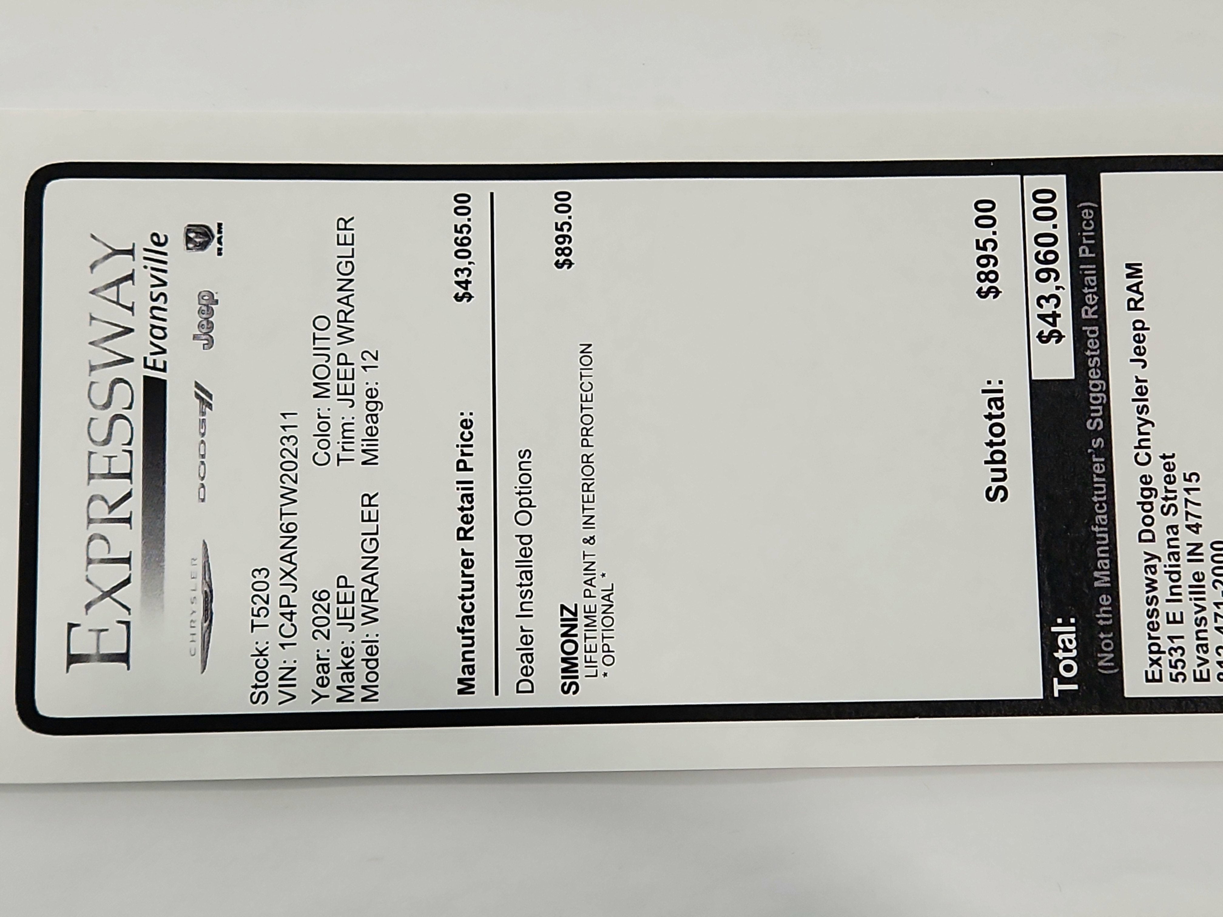 - Vehicle Name: Jeep Wrangler