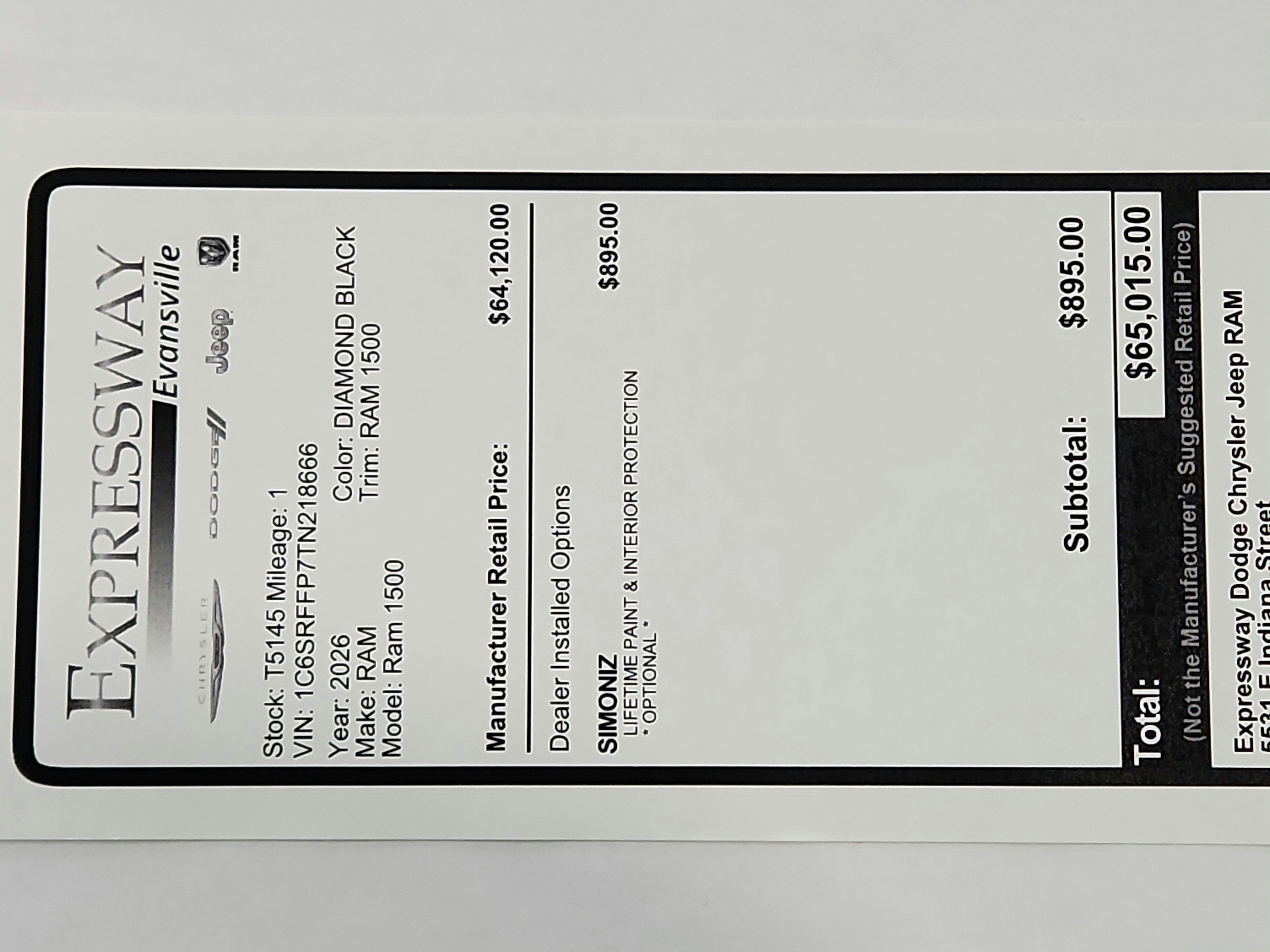 - Vehicle Name: Ram 1500