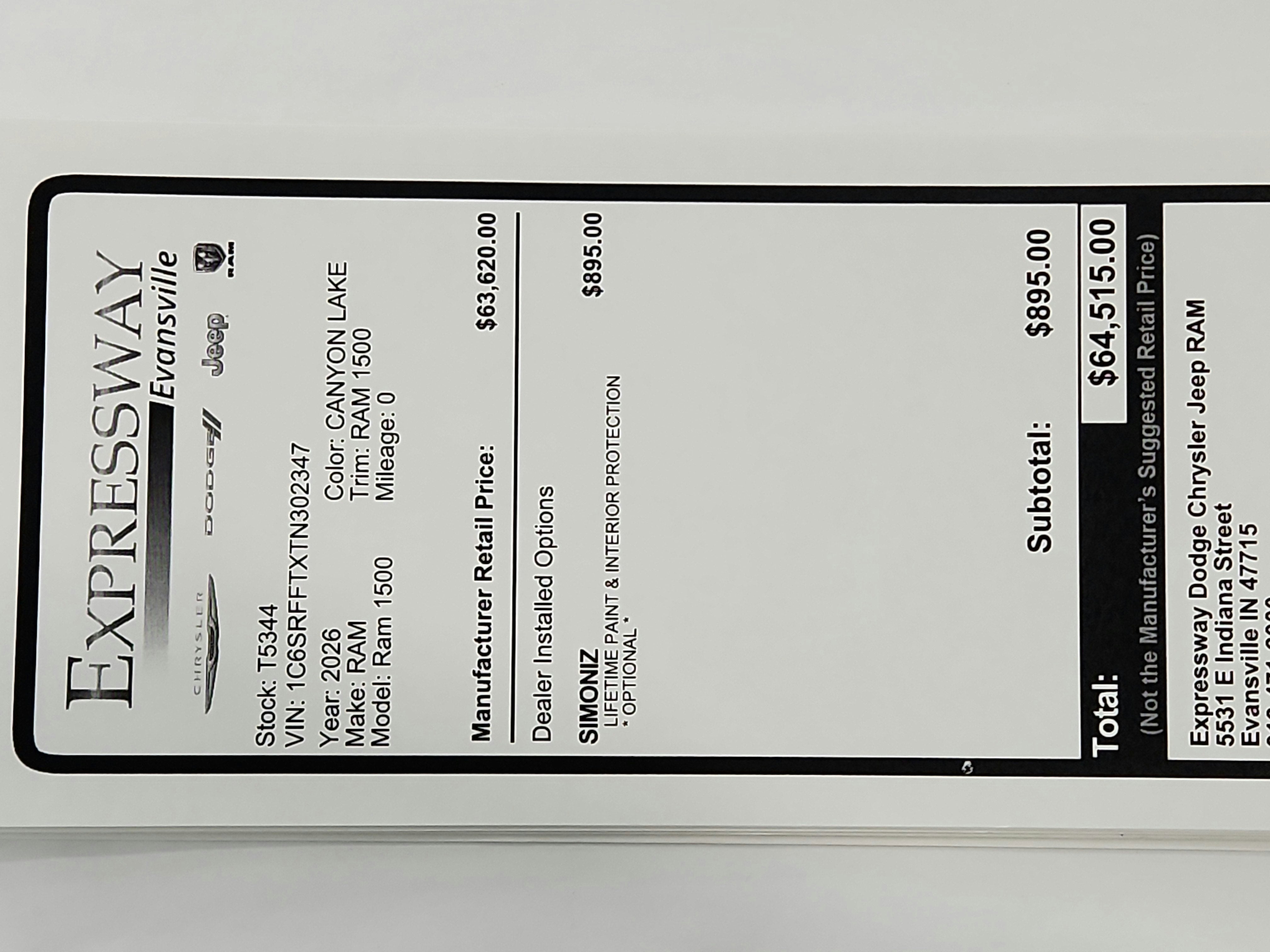 - Vehicle Name: Ram 1500