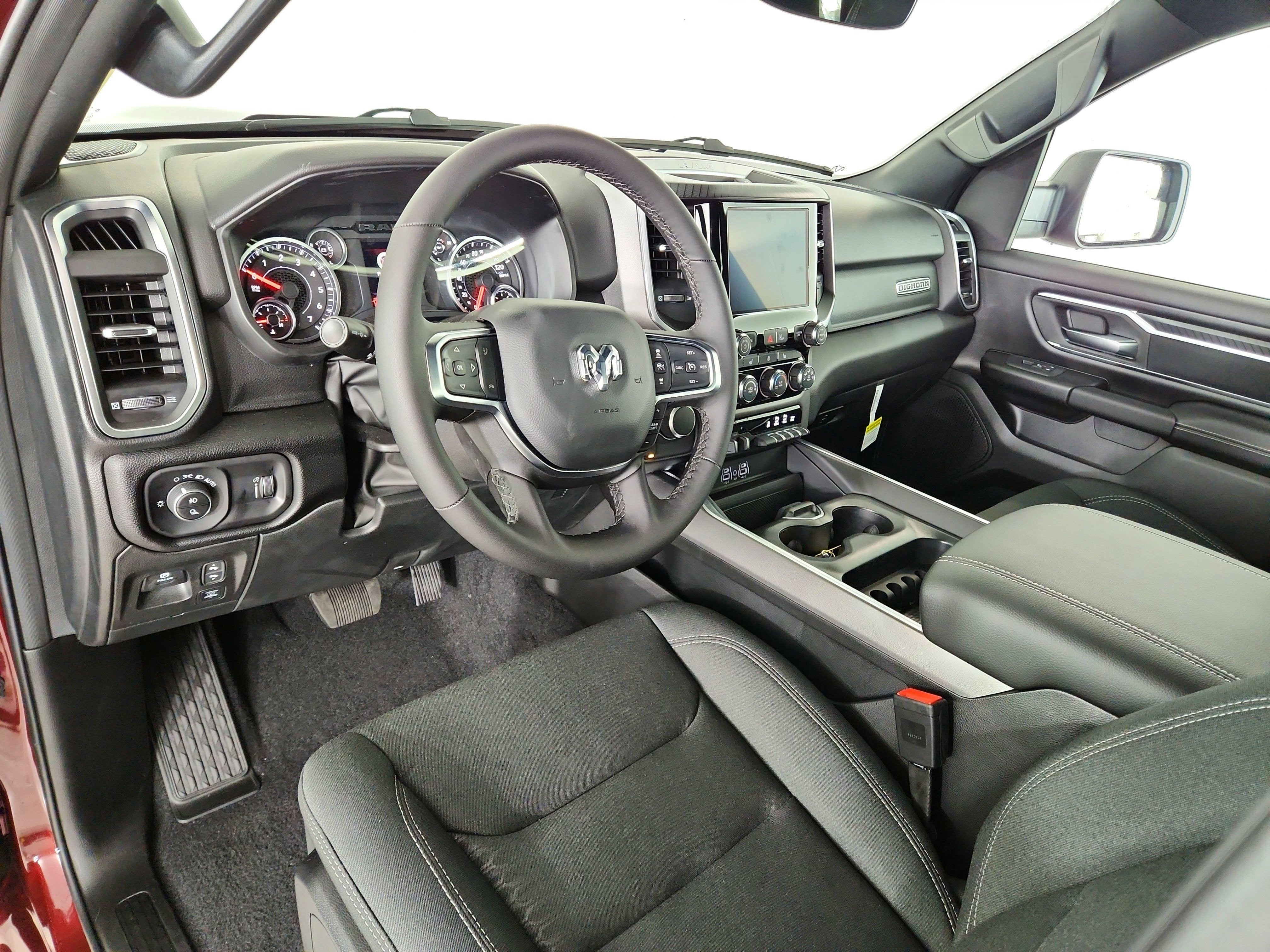 SPORT APPEARANCE PACKAGE -inc: Grille Surround 1 Body Color Texture 1 Black, Body Color Tailgate Handle, Black Interior Accents, Body Color Front Bumper, Body Color Door Handles, Body Color Rear Bumper w/Step Pads, QUICK ORDER PACKAGE 21Z BIG HORN -inc: Engine: 3.0L I6 Hurricane SO Twin Turbo ESS, Transmission: 8-Speed Automatic (8HP75) , TIRES: 275/55R20 OWL ALL SEASON -inc: Bridgestone Brand Tires, REAR WHEELHOUSE LINERS, GVWR: 7,100 LBS, ENGINE: 3.0L I6 HURRICANE SO TWIN TURBO ESS -inc: Aux Battery, 700 Amp Maintenance Free Battery, Active Noise Control System, GVWR: 7,100 lbs, 3.55 Rear Axle Ratio, Dual Rear Exhaust w/Bright Tips, Start-Stop Dual Battery System, 230 Amp Alternator, DELMONICO RED PEARLCOAT, BLACK, DELUXE CLOTH BUCKET SEATS -inc: Power Adjust 8-Way Driver Seat, Rear 60/40 Folding Seat, Rear Center Armrest, Front Seat Back Map Pockets, Power 2-Way Driver Lumbar Adjust, BIG HORN LEVEL 1 EQUIPMENT GROUP -inc: SiriusXM Radio Service, Rear Window Defroster, Rear View Auto Dim Mirror, Power Adjustable Pedals, Leather Wrapped Steering Wheel, Rear Power Sliding Window, Rear Dome w/On/Off Switch Lamp, Glove Box Lamp, Auto Power-Folding Mirrors, Auto Dim Exterior Driver Mirror, Heated Front Seats, Heated Steering Wheel, Black Premium Power Mirrors, SiriusXM Satellite Radio, 400W Inverter, Exterior Mirrors w/Supplemental Signals, Steering Wheel Mounted Audio Controls, Exterior Mirrors Courtesy Lamps, Body Color Fender Flares, 115V Auxiliary Power Outlet, Universal Garage Door Opener, 2nd Row In Floor Storage Bins, Sun Visors w/Illuminated Vanity Mirrors, BED UTILITY GROUP -inc: MOPAR Spray In Bedliner, MOPAR 4 Adjustable Cargo Tie-Down Hooks, Pick-Up Box Lighting, Exterior 115V AC Outlet.