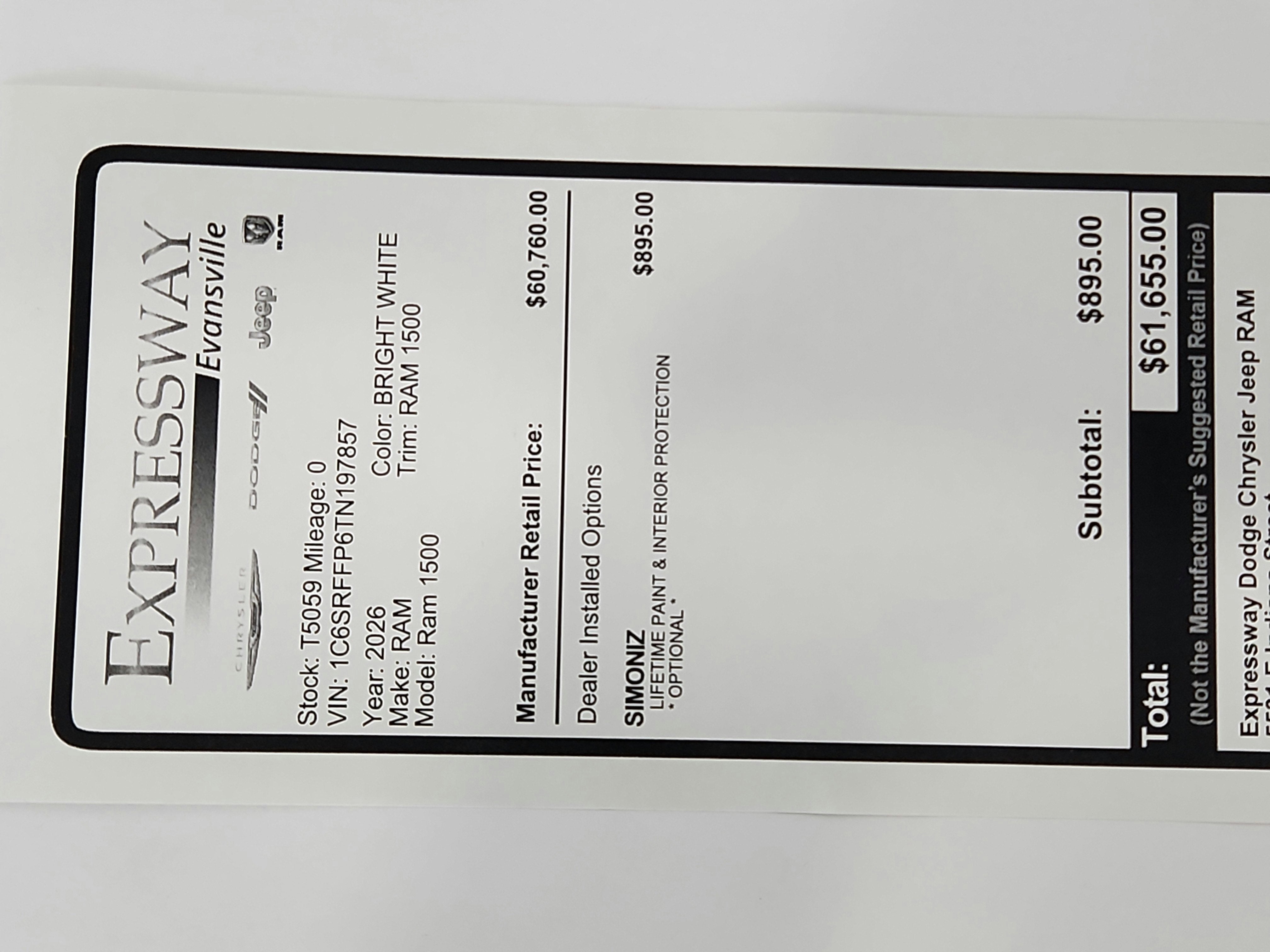 • Vehicle Name: Ram 1500