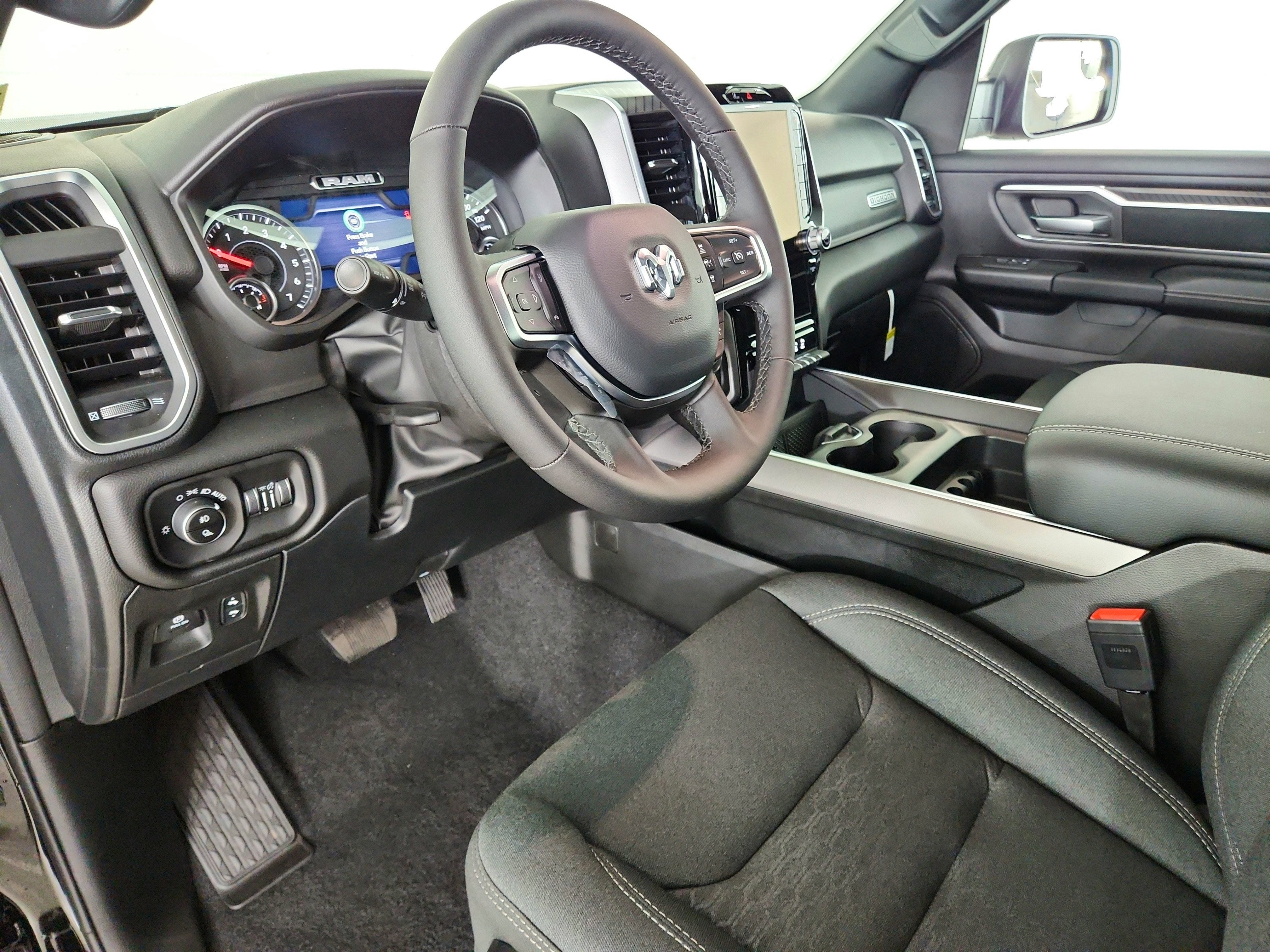 QUICK ORDER PACKAGE 27Z BIG HORN -inc: Engine: 5.7L V8 HEMI MDS VVT eTorque, Transmission: 8-Speed Automatic (8HP75) , REAR WHEELHOUSE LINERS, RADIO: UCONNECT 5 NAV W/12.0" DISPLAY, NIGHT EDITION -inc: Tires: 275/55R20 OWL All Season, Bridgestone Brand Tires, Accent Color Premium Power Mirrors, Exterior Mirrors w/Supplemental Signals, Black Headlamp Bezels, Exterior Mirrors Courtesy Lamps, Grille Black Surround Black Mesh, Auto Power-Folding Mirrors, Wheels: 20" x 9.0" Aluminum Painted Clad, Auto Dim Exterior Driver Mirror, Black Exterior Truck Badging, Anti-Spin Differential Rear Axle, Accent Color Door Handles, Accent Color Tailgate Handle, Black Interior Accents, Dual Exhaust w/Black Tips, Body Color Front Bumper, Body Color Rear Bumper w/Step Pads, Black Tail Lamp Bezels, RAM Grille Badge - Black, Black Painted Exterior Mirrors Caps, MYFLEXCARE SERVICE PLAN, GVWR: 7,100 LBS, ENGINE: 5.7L V8 HEMI MDS VVT ETORQUE -inc: Active Noise Control System, Heavy Duty Engine Cooling, Passive Tuned Mass Damper, GVWR: 7,100 lbs, Dual Rear Exhaust w/Bright Tips, G/T Exhaust, 18" Aluminum Spare Wheel, DIAMOND BLACK CRYSTAL PEARLCOAT, BLACK, DELUXE CLOTH BUCKET SEATS -inc: Power Adjust 8-Way Driver Seat, Rear 60/40 Folding Seat, Rear Center Armrest, Front Seat Back Map Pockets, Power 2-Way Driver Lumbar Adjust, BIG HORN LEVEL 2 EQUIPMENT GROUP -inc: SiriusXM Radio Service, Power Adjustable Pedals, Leather Wrapped Steering Wheel, 12" Touchscreen Display, Glove Box Lamp, Auto Power-Folding Mirrors, 115V Auxiliary Rear Power Outlet, Media Hub w/2 Charge Only USBs, Heated Front Seats, Security Alarm, Black Premium Power Mirrors, Premium Overhead Console, 9 Amplified Speakers w/Subwoofer, Disassociated Touchscreen Display, Body Color Fender Flares, Remote Tailgate Release, 115V Auxiliary Power Outlet, LED Dome Lamp w/On/Off Switch, Universal Garage Door Opener, 2nd Row In Floor Storage Bins, Sun Visors w/Illuminated Vanity Mirrors, LED Footwell Lighting, Rear Window Defroster, Rear View Auto Dim Mirror, Rear Power Sliding Window, GPS Navigation, Overhead LED Lamps, Wheels: 20" x 9" Aluminum Chrome Clad (WRK), Tires: 275/55R20 OWL All Season, Bridgestone Brand Tires, Auto Dim Exterior Driver Mirror, SiriusXM w/360L, Connected Travel & Traffic Services, Heated Steering Wheel, Configurable Drive Mod.