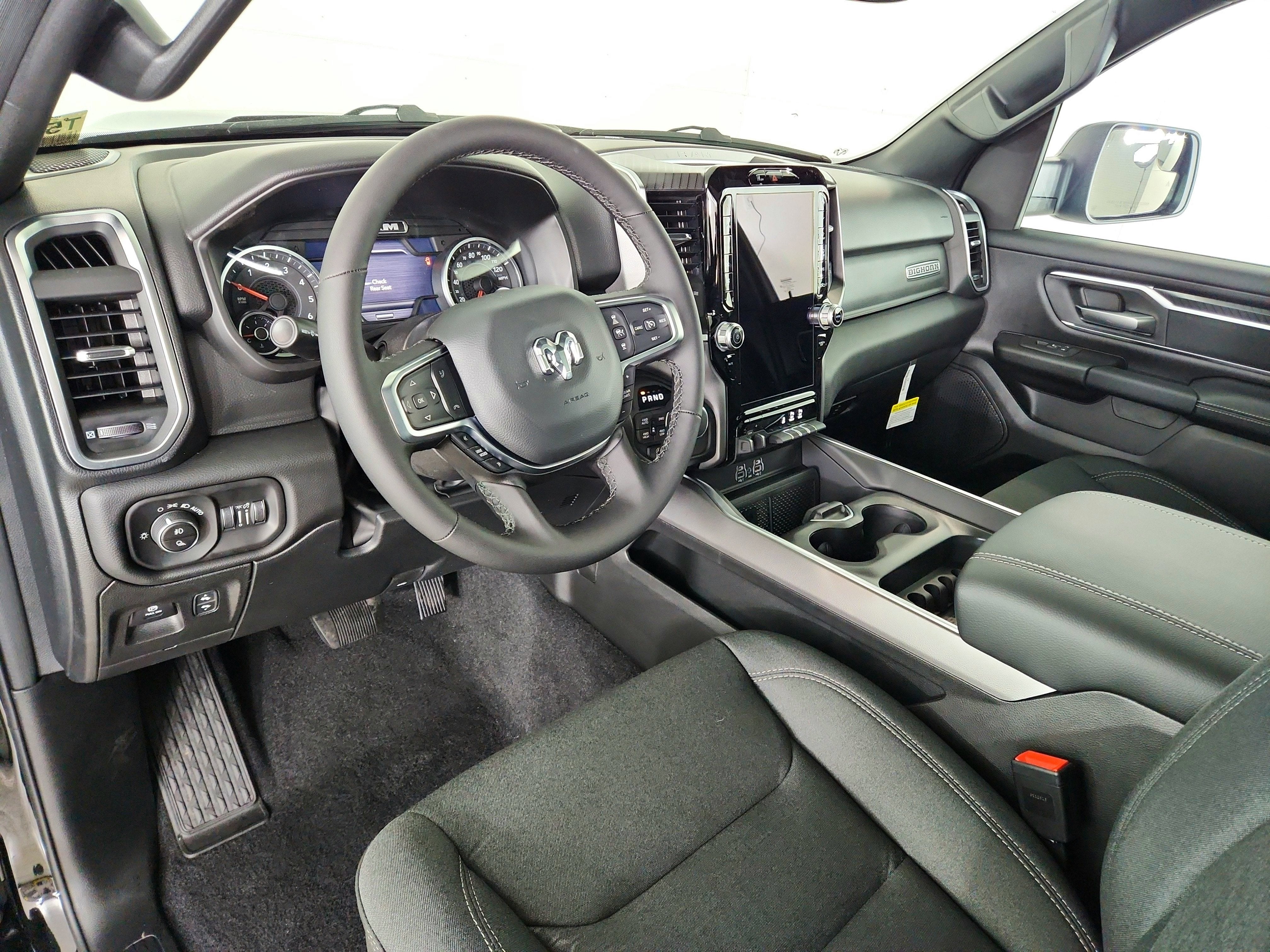QUICK ORDER PACKAGE 27Z BIG HORN -inc: Engine: 5.7L V8 HEMI MDS VVT eTorque, Transmission: 8-Speed Automatic (8HP75) , TIRES: 275/55R20 OWL ALL SEASON -inc: Bridgestone Brand Tires, REAR WHEELHOUSE LINERS, RADIO: UCONNECT 5 NAV W/12.0" DISPLAY, NIGHT EDITION -inc: Tires: 275/55R20 OWL All Season, Bridgestone Brand Tires, Accent Color Premium Power Mirrors, Exterior Mirrors w/Supplemental Signals, Black Headlamp Bezels, Exterior Mirrors Courtesy Lamps, Grille Black Surround Black Mesh, Auto Power-Folding Mirrors, Wheels: 20" x 9.0" Aluminum Painted Clad, Auto Dim Exterior Driver Mirror, Black Exterior Truck Badging, Anti-Spin Differential Rear Axle, Accent Color Door Handles, Accent Color Tailgate Handle, Black Interior Accents, Dual Exhaust w/Black Tips, Body Color Front Bumper, Body Color Rear Bumper w/Step Pads, Black Tail Lamp Bezels, RAM Grille Badge - Black, Black Painted Exterior Mirrors Caps, MYFLEXCARE SERVICE PLAN, MOPAR FRONT & REAR RUBBER FLOOR MATS, GVWR: 7,100 LBS, ENGINE: 5.7L V8 HEMI MDS VVT ETORQUE -inc: Active Noise Control System, Heavy Duty Engine Cooling, Passive Tuned Mass Damper, GVWR: 7,100 lbs, Dual Rear Exhaust w/Bright Tips, G/T Exhaust, 18" Aluminum Spare Wheel, DUAL-PANE PANORAMIC SUNROOF -inc: Dome Dual LED Reading Lamp.