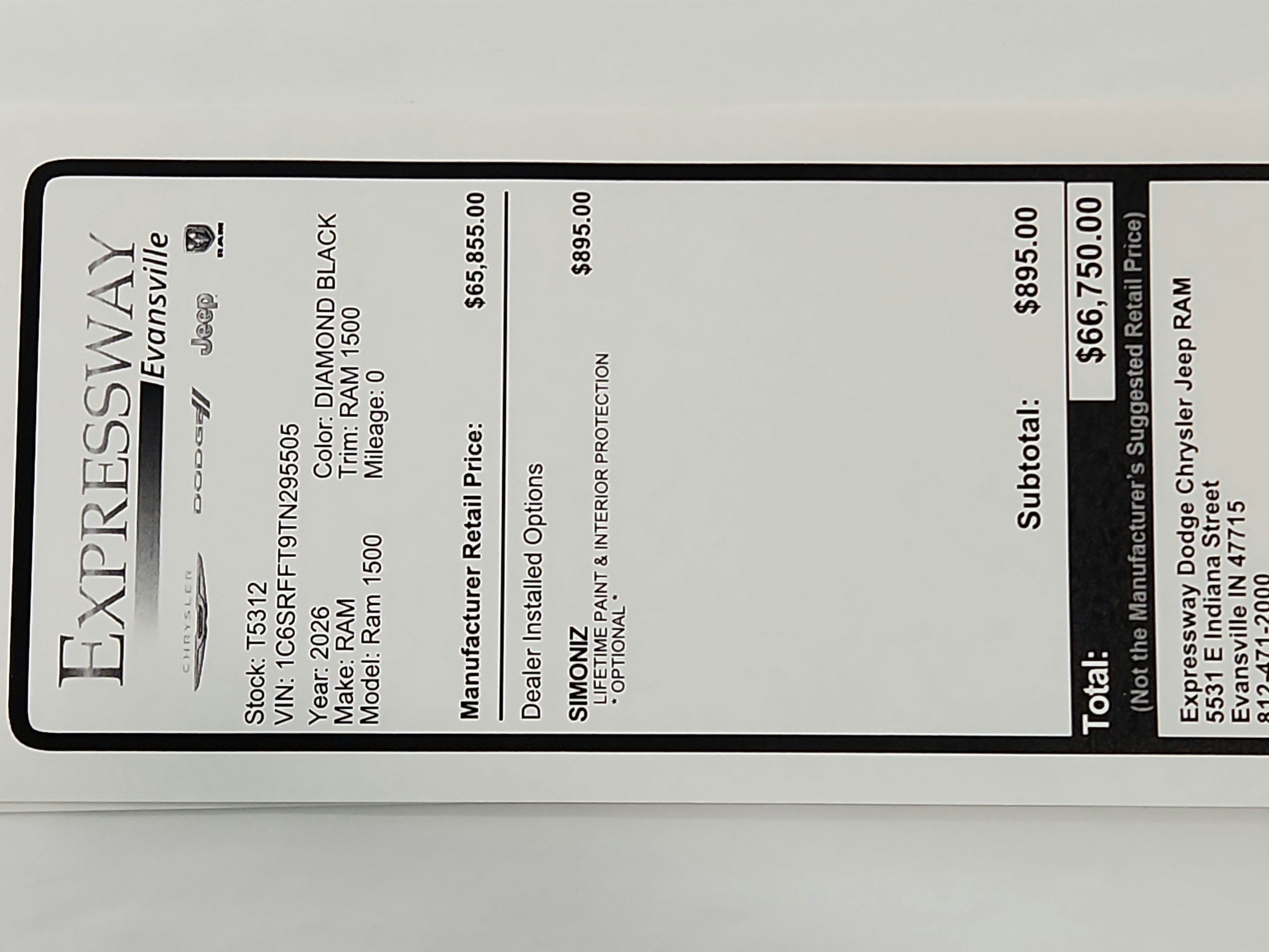 - Vehicle Name: Ram 1500