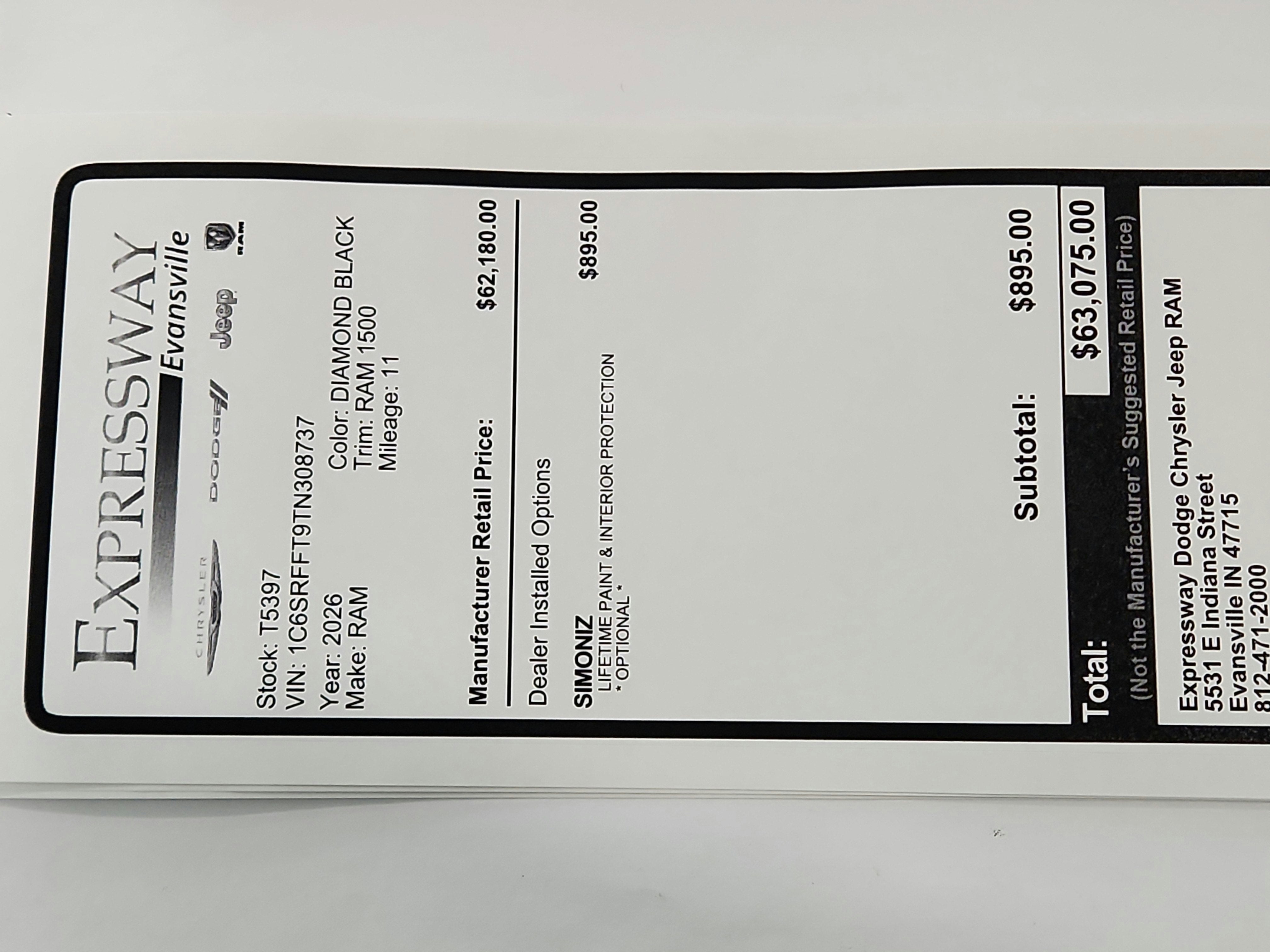 - Vehicle Name: Ram 1500