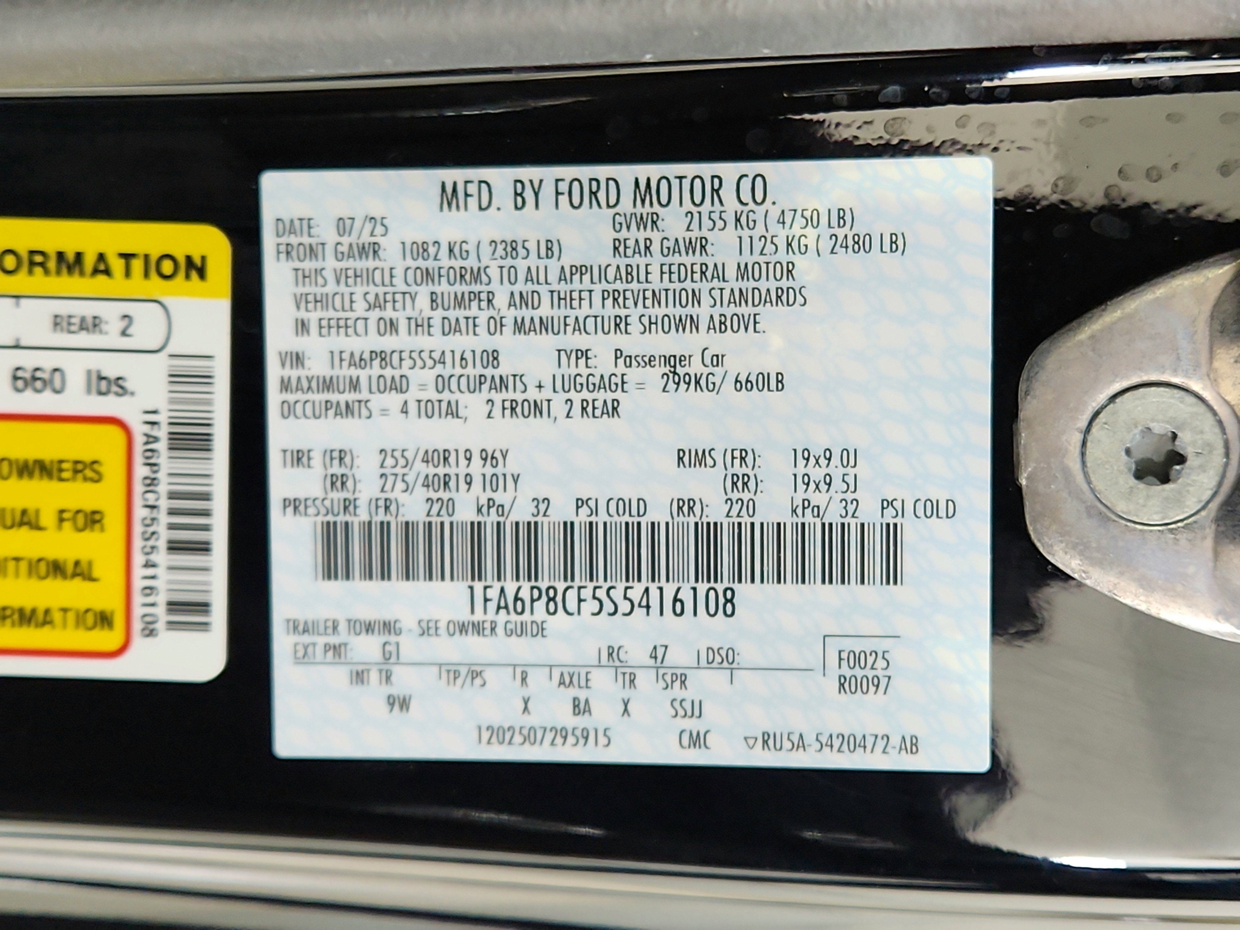 - Vehicle Name: Ford Mustang